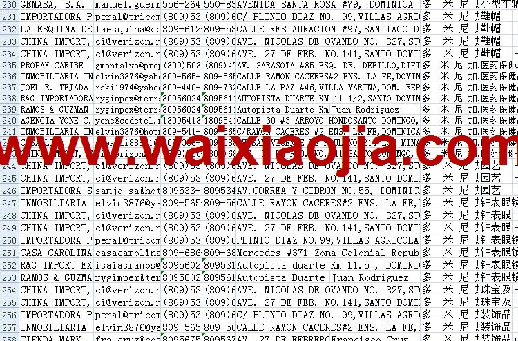 多米尼加采購(gòu)商名單數(shù)據(jù)為Excel格式,信息可任意修改、復(fù)制、打印、導(dǎo)出及導(dǎo)入到傳真、郵件群發(fā)等軟件中,無(wú)任何限制。