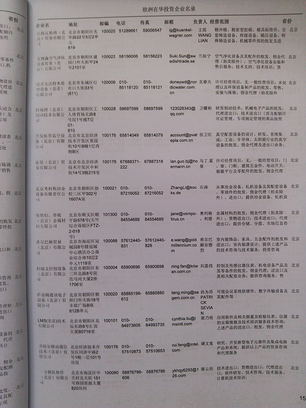 最新法國在華企業(yè)黃頁主要收錄了法國在中國境內(nèi)的獨(dú)資、合資、合作經(jīng)營等類型的企業(yè)通信黃頁,法國外商投資企業(yè)黃頁內(nèi)容有:企業(yè)名稱、地址、電話、傳真、電子郵箱、經(jīng)營范圍、注冊資金等;法國外商黃頁都是一些國際上的知名品牌企業(yè)在大陸地區(qū)設(shè)立的分公司及辦事機(jī)構(gòu),這類企業(yè)經(jīng)濟(jì)實(shí)力、技術(shù)實(shí)力與品牌效應(yīng)都比較強(qiáng),與這類企業(yè)開展合作業(yè)務(wù)是許多國內(nèi)企業(yè)夢寐以求的事情,因此在華法國企業(yè)名單是各個國內(nèi)企業(yè)提高銷售業(yè)績必備的參考工具!
