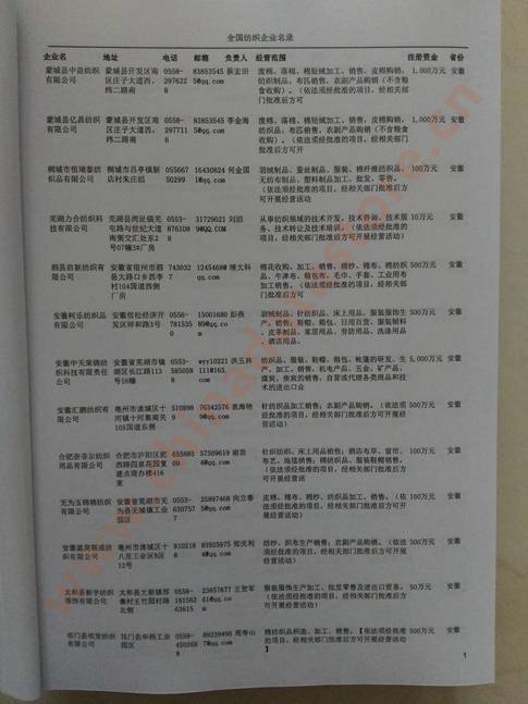 某省或直轄市 | 如上海、浙江紡織企業(yè)名單 | 80% - 90% | 600元 | 附贈(zèng)一冊(cè)紡織紙質(zhì)印刷品 |