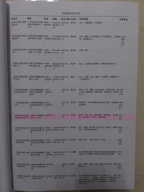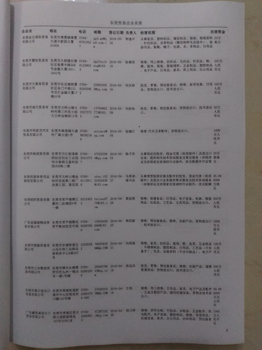 2021版最新東莞企業(yè)黃頁包括《東莞制造企業(yè)黃頁》、《東莞貿(mào)易企業(yè)黃頁》、《東莞民營企業(yè)黃頁》、《東莞外資企業(yè)黃頁》、《東莞外貿(mào)企業(yè)黃頁》共五冊,現(xiàn)優(yōu)惠價(jià):280元/冊。每冊內(nèi)容包括:單位名稱、地址、郵編、電話、傳真、郵箱、經(jīng)營范圍等;東莞企業(yè)黃頁涵蓋了近幾年來最新成立的、有一定規(guī)模的企業(yè),具有非常高的營銷價(jià)值。有了這套黃頁開展業(yè)務(wù)也有了針對性,也省去了盲目去尋找客戶名單而浪費(fèi)的時(shí)間了,工作效率也會有很大的提高。歡迎需要東莞企業(yè)黃頁的朋友及時(shí)聯(lián)系我們!