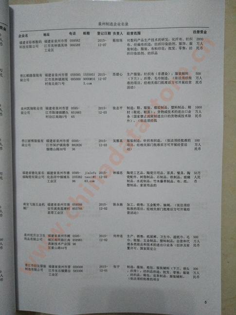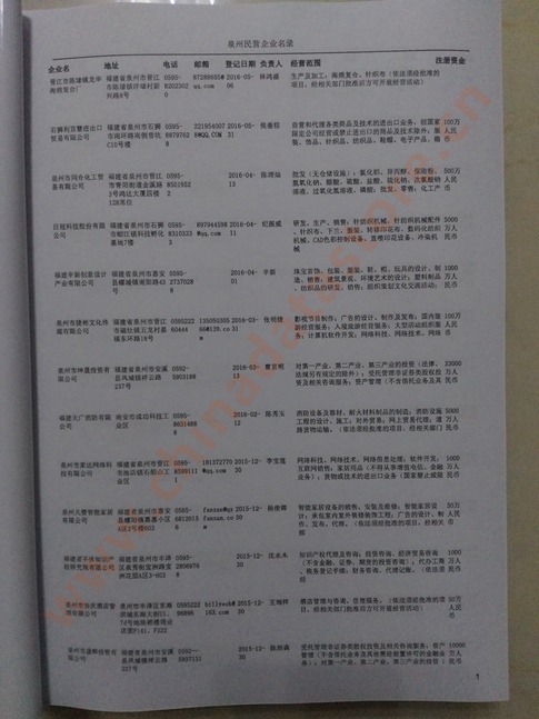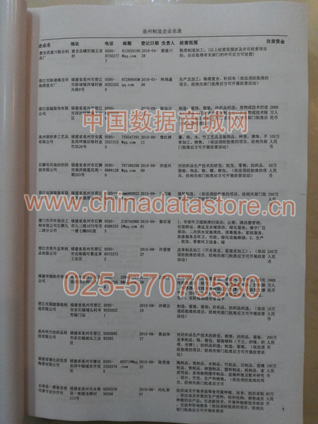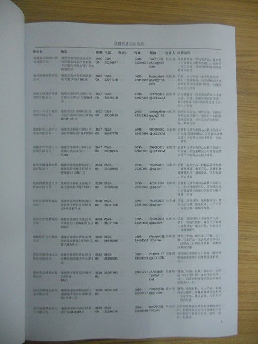 2021版最新泉州企業(yè)黃頁包括《泉州制造企業(yè)黃頁》、《泉州貿(mào)易企業(yè)黃頁》、《泉州民營企業(yè)黃頁》、《泉州外資企業(yè)黃頁》、《泉州外貿(mào)企業(yè)黃頁》共五冊,現(xiàn)優(yōu)惠價:280元/冊。每冊內(nèi)容包括:單位名稱、地址、郵編、電話、傳真、郵箱、經(jīng)營范圍等;泉州企業(yè)黃頁涵蓋了近幾年來最新成立的、有一定規(guī)模的企業(yè),具有非常高的營銷價值。有了這套黃頁開展業(yè)務也有了針對性,也省去了盲目去尋找客戶名單而浪費的時間了,工作效率也會有很大的提高。歡迎需要泉州企業(yè)黃頁的朋友及時聯(lián)系我們!
