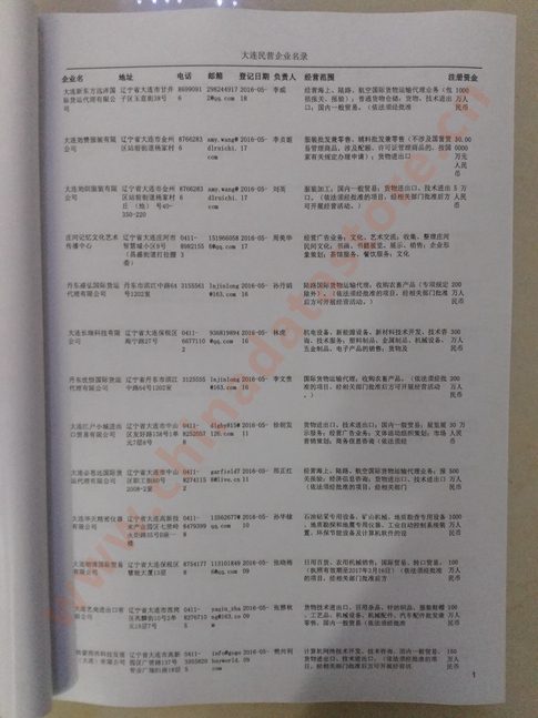2021版最新大連企業(yè)黃頁包括《大連制造企業(yè)黃頁》、《大連貿(mào)易企業(yè)黃頁》、《大連民營企業(yè)黃頁》、《大連外資企業(yè)黃頁》、《大連外貿(mào)企業(yè)黃頁》共五冊(cè),現(xiàn)優(yōu)惠價(jià):280元/冊(cè)。每冊(cè)內(nèi)容包括:?jiǎn)挝幻Q、地址、郵編、電話、傳真、郵箱、經(jīng)營范圍等;大連企業(yè)黃頁涵蓋了近幾年來最新成立的、有一定規(guī)模的企業(yè),具有非常高的營銷價(jià)值。有了這套黃頁開展業(yè)務(wù)也有了針對(duì)性,也省去了盲目去尋找客戶名單而浪費(fèi)的時(shí)間了,工作效率也會(huì)有很大的提高。歡迎需要大連企業(yè)黃頁的朋友及時(shí)聯(lián)系我們!