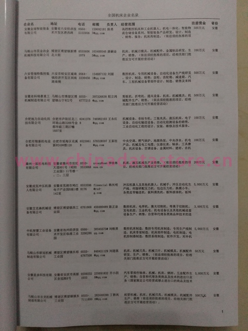 某省或直轄市 | 如上海、浙江機(jī)床企業(yè)名單 | 80% - 90% | 600元 | 附贈(zèng)一冊(cè)機(jī)床紙質(zhì)印刷品 |