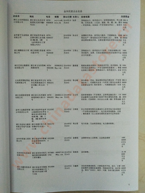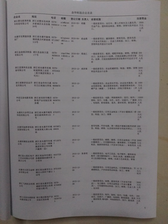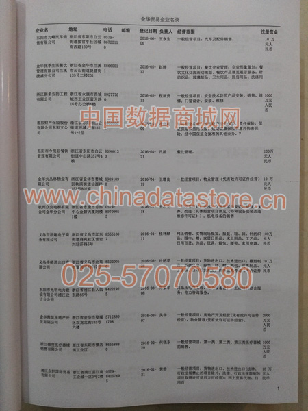 2021版最新金華企業(yè)黃頁包括《金華制造企業(yè)黃頁》、《金華貿(mào)易企業(yè)黃頁》、《金華民營企業(yè)黃頁》、《金華外資企業(yè)黃頁》、《金華外貿(mào)企業(yè)黃頁》共五冊(cè),現(xiàn)優(yōu)惠價(jià):280元/冊(cè)。每冊(cè)內(nèi)容包括:單位名稱、地址、郵編、電話、傳真、郵箱、經(jīng)營范圍等;金華企業(yè)黃頁涵蓋了近幾年來最新成立的、有一定規(guī)模的企業(yè),具有非常高的營銷價(jià)值。有了這套黃頁開展業(yè)務(wù)也有了針對(duì)性,也省去了盲目去尋找客戶名單而浪費(fèi)的時(shí)間了,工作效率也會(huì)有很大的提高。歡迎需要金華企業(yè)黃頁的朋友及時(shí)聯(lián)系我們!