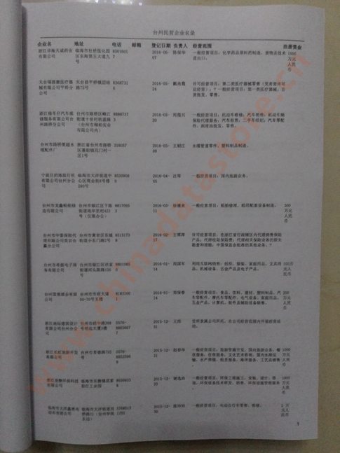 2021版最新臺州企業(yè)黃頁包括《臺州制造企業(yè)黃頁》、《臺州貿易企業(yè)黃頁》、《臺州民營企業(yè)黃頁》、《臺州外資企業(yè)黃頁》、《臺州外貿企業(yè)黃頁》共五冊,現優(yōu)惠價:280元/冊。每冊內容包括:單位名稱、地址、郵編、電話、傳真、郵箱、經營范圍等;臺州企業(yè)黃頁涵蓋了近幾年來最新成立的、有一定規(guī)模的企業(yè),具有非常高的營銷價值。有了這套黃頁開展業(yè)務也有了針對性,也省去了盲目去尋找客戶名單而浪費的時間了,工作效率也會有很大的提高。歡迎需要臺州企業(yè)黃頁的朋友及時聯系我們!