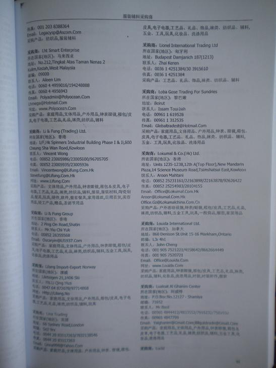 書刊簡(jiǎn)介:《全球采商黃頁(yè)》系列叢書是由全球最活躍的專業(yè)買家及重要國(guó)際性展會(huì)的到會(huì)采購(gòu)商名片信息匯編而成,包含三十多個(gè)行業(yè)分類,匯集了各類產(chǎn)品的買家信息。其中收錄的每家采購(gòu)商信息均是我們通過與買家面對(duì)面的登記整理收集而成,采購(gòu)意向明確,針對(duì)性強(qiáng)。為了確保信息的準(zhǔn)確性和時(shí)效性,我們定期進(jìn)行跟進(jìn)、回訪、補(bǔ)充及更新工作。每家采購(gòu)商信息包括國(guó)別、公司名稱、聯(lián)系人、地址、電話、傳真、電郵、網(wǎng)址、采購(gòu)產(chǎn)品等詳細(xì)內(nèi)容,每?jī)?cè)《黃頁(yè)》約有兩千家左右的采購(gòu)商信息。在當(dāng)前國(guó)際出口形勢(shì)日趨嚴(yán)峻的環(huán)境下,如何降低成本開拓國(guó)際市場(chǎng),是每個(gè)出口企業(yè)急需尋找的答案,我們相信通過我們10多年的外貿(mào)信息服務(wù)經(jīng)驗(yàn)和最新的國(guó)際買家資源服務(wù),將會(huì)為您拓展全球市場(chǎng)提供最直接有效的幫助。專業(yè)對(duì)口的買家信息一定會(huì)幫助貴公司打開更廣闊的外貿(mào)市場(chǎng)!