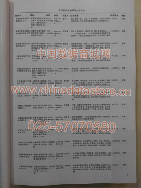 2024年新版中國醫(yī)療器械采購企業(yè)黃頁,收錄了全國各地經(jīng)營范圍涉及醫(yī)療器械產(chǎn)品的貿(mào)易企業(yè),這些都是頗具實力的醫(yī)療器械產(chǎn)品的中國采購商。黃頁內(nèi)容包含:企業(yè)名稱、地址、電話、傳真、郵箱、經(jīng)營范圍、省份、注冊資金等信息。該套黃頁包含一個黃頁光碟加一冊紙質(zhì)書刊,全國價格:1200元,省/直轄市價格是:400元,城市價格是:200元,共收錄了全國各地大概36680(更新日期:2017.1)家醫(yī)療器械產(chǎn)品采購企業(yè)。黃頁光碟中是EXCEL格式,信息可任意修改、復(fù)制、打印、導出及導入到傳真、郵件群發(fā)等軟件中,無任何限制。