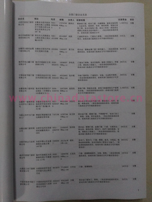 某省或直轄市 | 如上海、浙江門(mén)窗企業(yè)名單 | 80% - 90% | 600元 | 附贈(zèng)一冊(cè)門(mén)窗紙質(zhì)印刷品 |