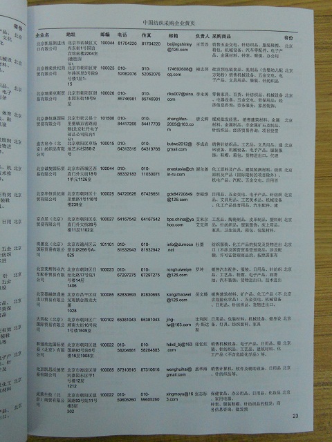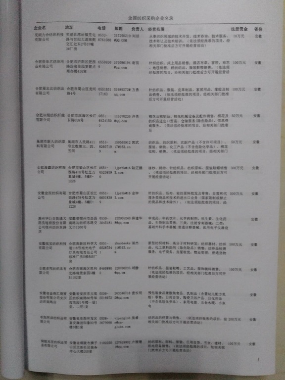 2024年新版中國(guó)紡織采購(gòu)企業(yè)黃頁(yè),收錄了全國(guó)各地經(jīng)營(yíng)范圍涉及紡織產(chǎn)品的貿(mào)易企業(yè),這些都是頗具實(shí)力的紡織產(chǎn)品的中國(guó)采購(gòu)商。黃頁(yè)內(nèi)容包含:企業(yè)名稱(chēng)、地址、電話(huà)、傳真、郵箱、經(jīng)營(yíng)范圍、省份、注冊(cè)資金等信息。該套黃頁(yè)包含一個(gè)黃頁(yè)光碟加一冊(cè)紙質(zhì)書(shū)刊,全國(guó)價(jià)格:1500元,省/直轄市價(jià)格:400元,城市價(jià)格:200元,共收錄了全國(guó)各地大概34571(統(tǒng)計(jì)日期:2018.1)家紡織產(chǎn)品采購(gòu)企業(yè)。黃頁(yè)光碟中是EXCEL格式,信息可任意修改、復(fù)制、打印、導(dǎo)出及導(dǎo)入到傳真、郵件群發(fā)等軟件中,無(wú)任何限制。