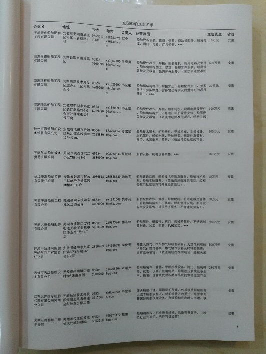 某省或直轄市 | 如上海、浙江船舶企業(yè)名單 | 80% - 90% | 600元 | 附贈一冊船舶紙質(zhì)印刷品 |