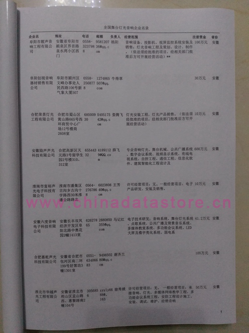某省或直轄市 | 如上海、浙江舞臺燈光音響企業(yè)名單 | 80% - 90% | 600元 | 附贈一冊舞臺燈光音響紙質(zhì)印刷品 |