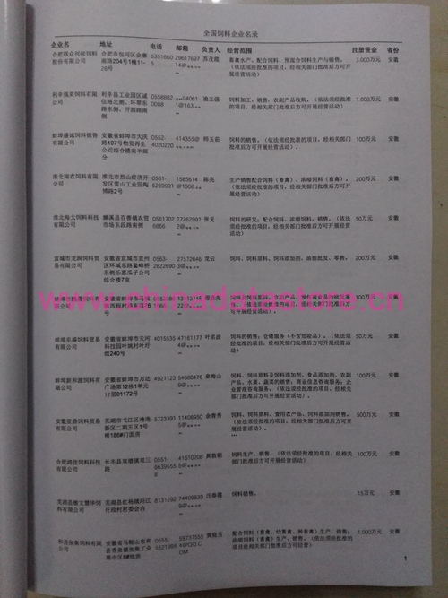 某省或直轄市 | 如上海、浙江飼料企業(yè)名單 | 80% - 90% | 600元 | 附贈一冊飼料紙質(zhì)印刷品 |
