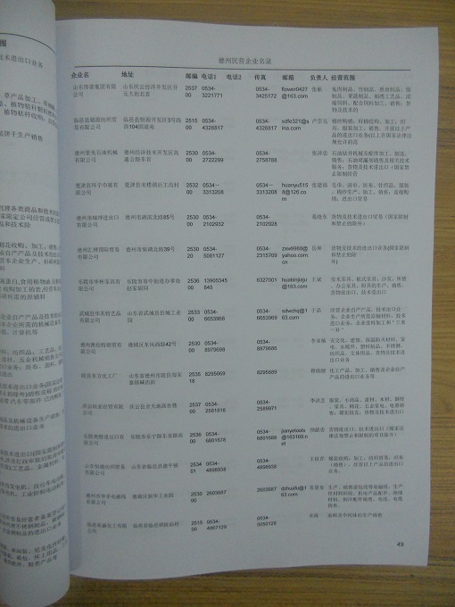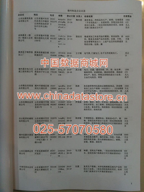 2021版最新德州企業(yè)黃頁(yè)包括《德州制造企業(yè)黃頁(yè)》、《德州民營(yíng)企業(yè)黃頁(yè)》,現(xiàn)優(yōu)惠價(jià):280元/冊(cè)。每?jī)?cè)內(nèi)容包括:?jiǎn)挝幻Q、地址、郵編、電話、傳真、郵箱、經(jīng)營(yíng)范圍等;德州企業(yè)黃頁(yè)涵蓋了近幾年來(lái)最新成立的、有一定規(guī)模的企業(yè),具有非常高的營(yíng)銷價(jià)值。有了這套黃頁(yè)開展業(yè)務(wù)也有了針對(duì)性,也省去了盲目去尋找客戶名單而浪費(fèi)的時(shí)間了,工作效率也會(huì)有很大的提高。歡迎需要德州企業(yè)黃頁(yè)的朋友及時(shí)聯(lián)系我們!