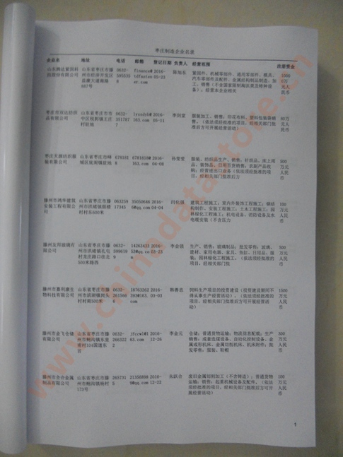 2021版最新棗莊企業(yè)黃頁(yè)包括《棗莊制造企業(yè)黃頁(yè)》、《棗莊民營(yíng)企業(yè)黃頁(yè)》,現(xiàn)優(yōu)惠價(jià):280元/冊(cè)。每?jī)?cè)內(nèi)容包括:?jiǎn)挝幻Q(chēng)、地址、郵編、電話(huà)、傳真、郵箱、經(jīng)營(yíng)范圍等;棗莊企業(yè)黃頁(yè)涵蓋了近幾年來(lái)最新成立的、有一定規(guī)模的企業(yè),具有非常高的營(yíng)銷(xiāo)價(jià)值。有了這套黃頁(yè)開(kāi)展業(yè)務(wù)也有了針對(duì)性,也省去了盲目去尋找客戶(hù)名單而浪費(fèi)的時(shí)間了,工作效率也會(huì)有很大的提高。歡迎需要棗莊企業(yè)黃頁(yè)的朋友及時(shí)聯(lián)系我們!