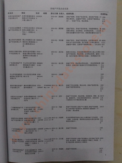 最新廣東房地產(chǎn)生產(chǎn)與貿(mào)易企業(yè)黃頁數(shù)據(jù)更新日期2024年12月最新,全國廣東房地產(chǎn)企業(yè)黃頁,都是具有一定規(guī)模的廣東房地產(chǎn)行業(yè)的注冊實體企業(yè),數(shù)據(jù)準確率高,是您開展各項營銷活動的必備資料。企業(yè)名單包括:企業(yè)名稱、地址、電話(以上必有,以下選有)、傳真、郵箱、登記日期、經(jīng)營范圍、注冊資金等信息。廣東房地產(chǎn)企業(yè)黃頁數(shù)據(jù)為Excel格式,信息可任意修改、復制、打印、導出及導入到傳真、郵件群發(fā)等軟件中,無任何限制。