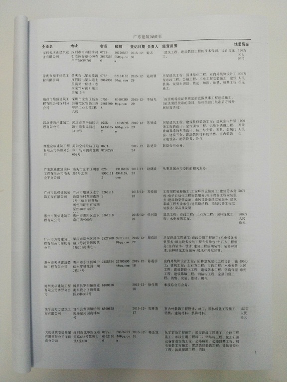 廣東建筑工程企業(yè)黃頁(yè) | 所有廣東建筑工程企業(yè)黃頁(yè) | 80% - 90% | 600元 | 附贈(zèng)一冊(cè)廣東建筑工程紙質(zhì)印刷品 |