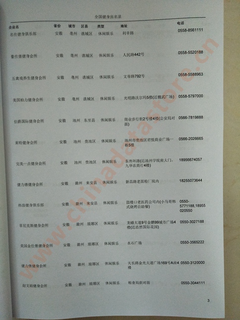 全國健身房黃頁 | 全國健身房黃頁 | 80% - 90% | 2000元 | 附贈(zèng)上下兩冊(cè)健身房紙質(zhì)印刷品 |