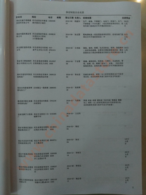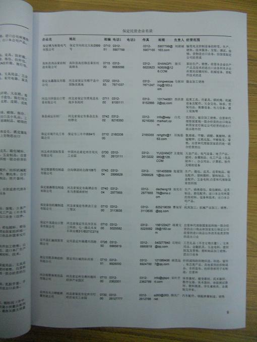 2021版最新保定企業(yè)黃頁包括《保定制造企業(yè)黃頁》、《保定民營企業(yè)黃頁》,現(xiàn)優(yōu)惠價:280元/冊。每冊內(nèi)容包括:單位名稱、地址、郵編、電話、傳真、郵箱、經(jīng)營范圍等;保定企業(yè)黃頁涵蓋了近幾年來最新成立的、有一定規(guī)模的企業(yè),具有非常高的營銷價值。有了這套黃頁開展業(yè)務也有了針對性,也省去了盲目去尋找客戶名單而浪費的時間了,工作效率也會有很大的提高。歡迎需要保定企業(yè)黃頁的朋友及時聯(lián)系我們!