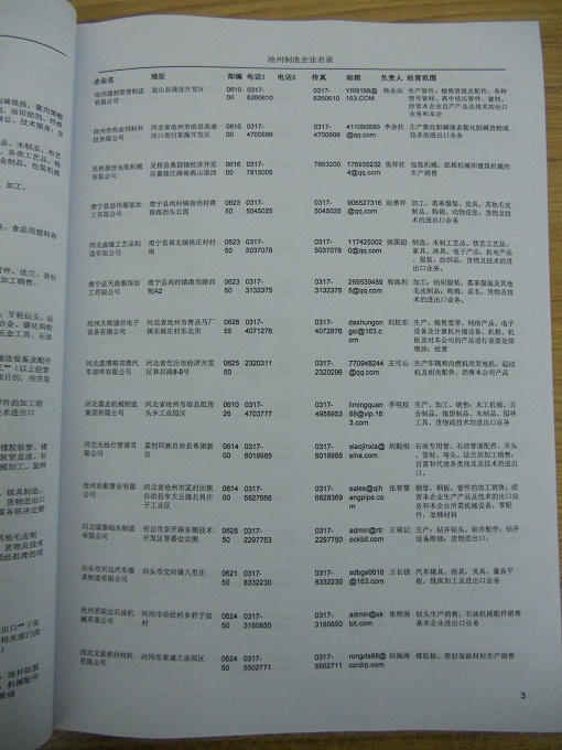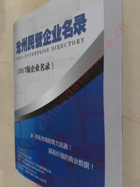 2021版最新滄州企業(yè)黃頁包括《滄州制造企業(yè)黃頁》、《滄州民營企業(yè)黃頁》,現(xiàn)優(yōu)惠價:280元/冊。每冊內(nèi)容包括:單位名稱、地址、郵編、電話、傳真、郵箱、經(jīng)營范圍等;滄州企業(yè)黃頁涵蓋了近幾年來最新成立的、有一定規(guī)模的企業(yè),具有非常高的營銷價值。有了這套黃頁開展業(yè)務(wù)也有了針對性,也省去了盲目去尋找客戶名單而浪費(fèi)的時間了,工作效率也會有很大的提高。歡迎需要滄州企業(yè)黃頁的朋友及時聯(lián)系我們!