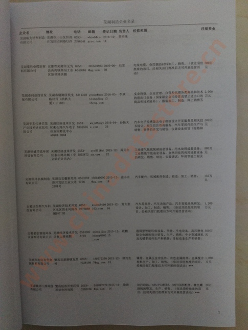 2021版最新蕪湖企業(yè)黃頁(yè)包括《蕪湖制造企業(yè)黃頁(yè)》、《蕪湖民營(yíng)企業(yè)黃頁(yè)》,現(xiàn)優(yōu)惠價(jià):280元/冊(cè)。每?jī)?cè)內(nèi)容包括:?jiǎn)挝幻Q(chēng)、地址、郵編、電話、傳真、郵箱、經(jīng)營(yíng)范圍等;蕪湖企業(yè)黃頁(yè)涵蓋了近幾年來(lái)最新成立的、有一定規(guī)模的企業(yè),具有非常高的營(yíng)銷(xiāo)價(jià)值。有了這套黃頁(yè)開(kāi)展業(yè)務(wù)也有了針對(duì)性,也省去了盲目去尋找客戶(hù)名單而浪費(fèi)的時(shí)間了,工作效率也會(huì)有很大的提高。歡迎需要蕪湖企業(yè)黃頁(yè)的朋友及時(shí)聯(lián)系我們!