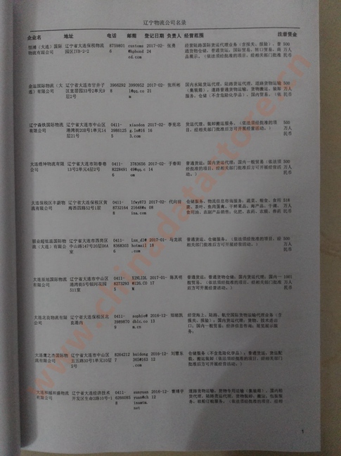 最新遼寧物流生產與貿易企業(yè)黃頁數(shù)據(jù)更新日期2024年12月最新,遼寧物流企業(yè)黃頁,都是具有一定規(guī)模的遼寧物流行業(yè)的注冊實體企業(yè),數(shù)據(jù)準確率高,是您開展各項營銷活動的必備資料。企業(yè)名單包括:企業(yè)名稱、地址、電話(以上必有,以下選有)、傳真、郵箱、登記日期、經營范圍、注冊資金等信息。遼寧物流企業(yè)黃頁數(shù)據(jù)為Excel格式,信息可任意修改、復制、打印、導出及導入到傳真、郵件群發(fā)等軟件中,無任何限制。