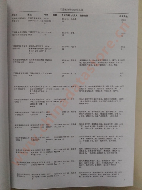 江蘇裝飾裝修企業(yè)黃頁 | 所有江蘇裝飾裝修企業(yè)黃頁 | 80% - 90% | 600元 | 附贈一冊江蘇裝飾裝修紙質(zhì)裝飾裝修品 |