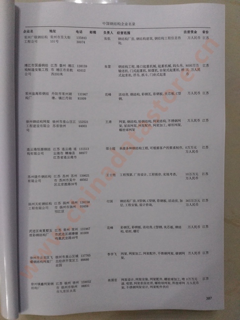 某省或直轄市 如上海、浙江鋼結(jié)構(gòu)企業(yè)名單  80% - 90% 600元 附贈一冊鋼結(jié)構(gòu)紙質(zhì)印刷品