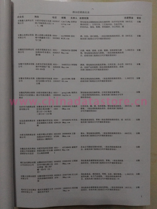 某省或直轄市 | 如上海、浙江酒水經(jīng)銷企業(yè)名單 | 80% - 90% | 600元 | 附贈一冊酒水經(jīng)銷紙質(zhì)印刷品 |