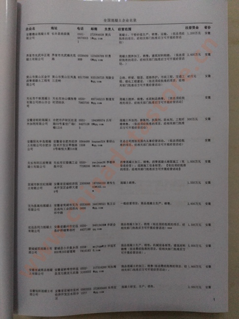 某省或直轄市 | 如上海、浙江混凝土企業(yè)名單 | 80% - 90% | 600元 | 附贈(zèng)一冊(cè)混凝土紙質(zhì)印刷品 |