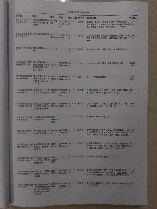 2021版最新黑龍江企業(yè)黃頁包括《黑龍江制造企業(yè)黃頁》、《黑龍江貿易企業(yè)黃頁》、《黑龍江民營企業(yè)黃頁》共三冊,優(yōu)惠價:280元/冊。每冊內容包括:單位名稱、地址、郵編、電話、傳真、郵箱、經營范圍等;黑龍江企業(yè)黃頁涵蓋了近幾年來最新成立的、有一定規(guī)模的企業(yè),具有非常高的營銷價值。有了這套黃頁開展業(yè)務也有了針對性,也省去了盲目去尋找客戶名單而浪費的時間了,工作效率也會有很大的提高。歡迎需要黑龍江企業(yè)黃頁的朋友及時聯(lián)系我們!