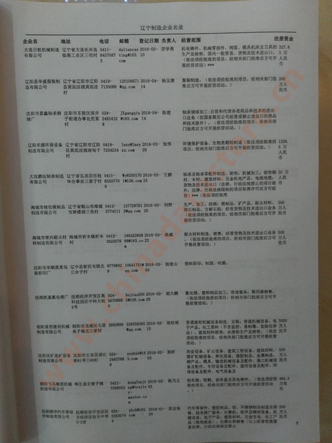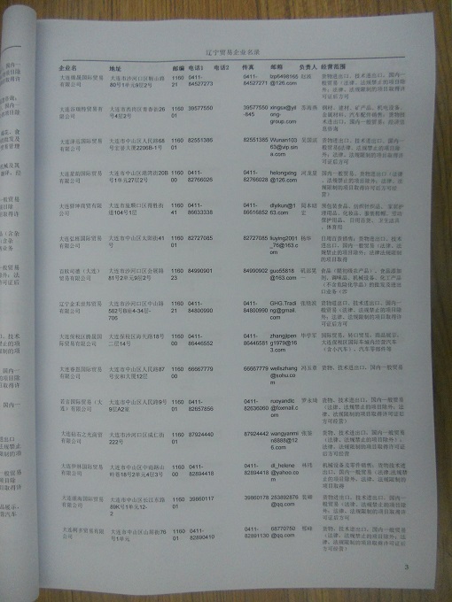 2021版最新遼寧企業(yè)黃頁包括《遼寧制造企業(yè)黃頁》、《遼寧貿(mào)易企業(yè)黃頁》、《遼寧民營企業(yè)黃頁》共三冊,優(yōu)惠價(jià):280元/冊。每冊內(nèi)容包括:單位名稱、地址、郵編、電話、傳真、郵箱、經(jīng)營范圍等;遼寧企業(yè)黃頁涵蓋了近幾年來最新成立的、有一定規(guī)模的企業(yè),具有非常高的營銷價(jià)值。有了這套黃頁開展業(yè)務(wù)也有了針對性,也省去了盲目去尋找客戶名單而浪費(fèi)的時(shí)間了,工作效率也會(huì)有很大的提高。歡迎需要遼寧企業(yè)黃頁的朋友及時(shí)聯(lián)系我們!