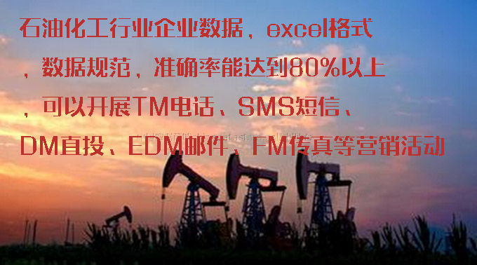 最新石油企業(yè)黃頁數據更新日期2024年12月最新,全國石油企業(yè)名單共102790條,都是具有一定規(guī)模的石油企業(yè)行業(yè)的注冊實體企業(yè),數據準確率高,是您開展各項營銷活動的必備資料。企業(yè)名單包括:企業(yè)名稱、地址、電話(以上必有,以下選有)、傳真、郵箱、登記日期、經營范圍、注冊資金等信息。石油企業(yè)黃頁數據為Excel格式,信息可任意修改、復制、打印、導出及導入到傳真、郵件群發(fā)等軟件中,無任何限制。