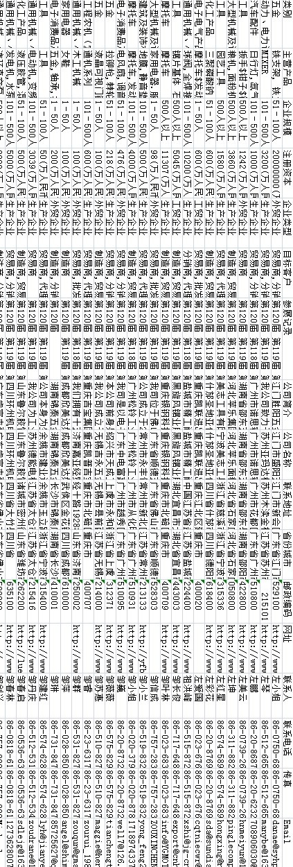 120屆廣交會參展商黃頁數(shù)據(jù)為Excel格式,信息可任意修改、復(fù)制、打印、導(dǎo)出及導(dǎo)入到傳真、郵件群發(fā)等軟件中,無任何限制。
