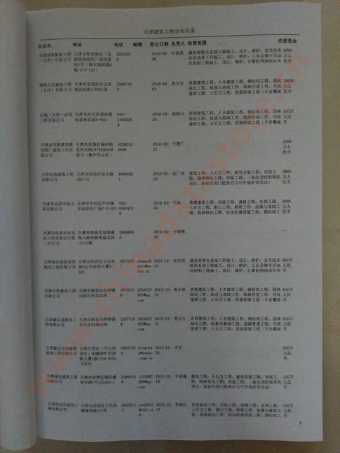 天津建筑工程企業(yè)黃頁 | 所有天津建筑工程企業(yè)黃頁 | 80% - 90% | 600元 | 附贈一冊天津建筑工程紙質(zhì)印刷品 |