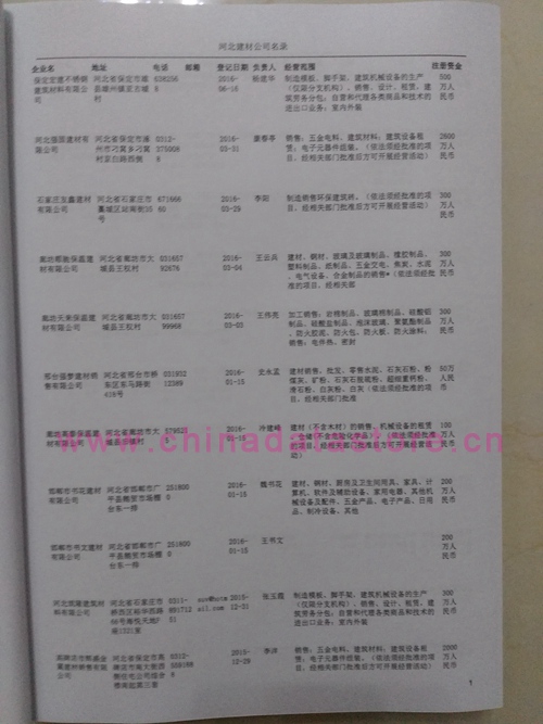 最新河北建筑材料生產(chǎn)與貿(mào)易企業(yè)黃頁(yè)數(shù)據(jù)更新日期2024年12月最新,都是具有一定規(guī)模的河北建筑材料行業(yè)的注冊(cè)實(shí)體企業(yè),數(shù)據(jù)準(zhǔn)確率高,是您開展各項(xiàng)營(yíng)銷活動(dòng)的必備資料。河北建筑材料企業(yè)黃頁(yè)包括:企業(yè)名稱、地址、電話、傳真、郵箱、登記日期、經(jīng)營(yíng)范圍、注冊(cè)資金等信息。河北建筑材料企業(yè)名單數(shù)據(jù)為Excel格式,信息可任意修改、復(fù)制、打印、導(dǎo)出及導(dǎo)入到傳真、郵件群發(fā)等河北建筑材料中,無(wú)任何限制。