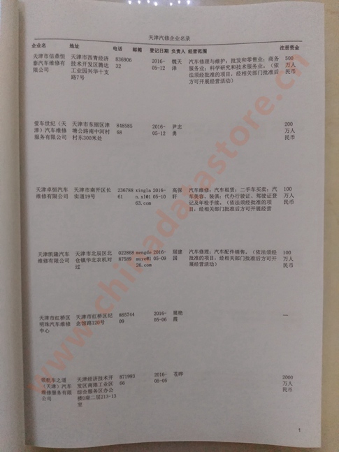 天津汽車維修企業(yè)黃頁 | 所有天津汽車維修企業(yè)黃頁 | 80% - 90% | 600元 | 附贈(zèng)一冊天津汽車維修紙質(zhì)印刷品 |
