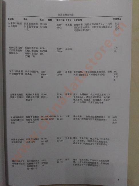 最新江蘇建材店黃頁數(shù)據(jù)更新日期2024年12月最新,數(shù)據(jù)準確率高,是您開展各項營銷活動的必備資料。名單包括:店鋪名稱、地址、省份、城市、電話、經(jīng)營范圍、營業(yè)時間信息。江蘇建材店企業(yè)黃頁數(shù)據(jù)為Excel格式,信息可任意修改、復(fù)制、打印,無任何限制。