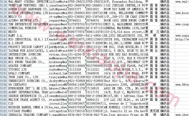 編織品采購商名單數(shù)據(jù)為Excel格式,信息可任意修改、復(fù)制、打印、導(dǎo)出及導(dǎo)入到傳真、郵件群發(fā)等軟件中,無任何限制。